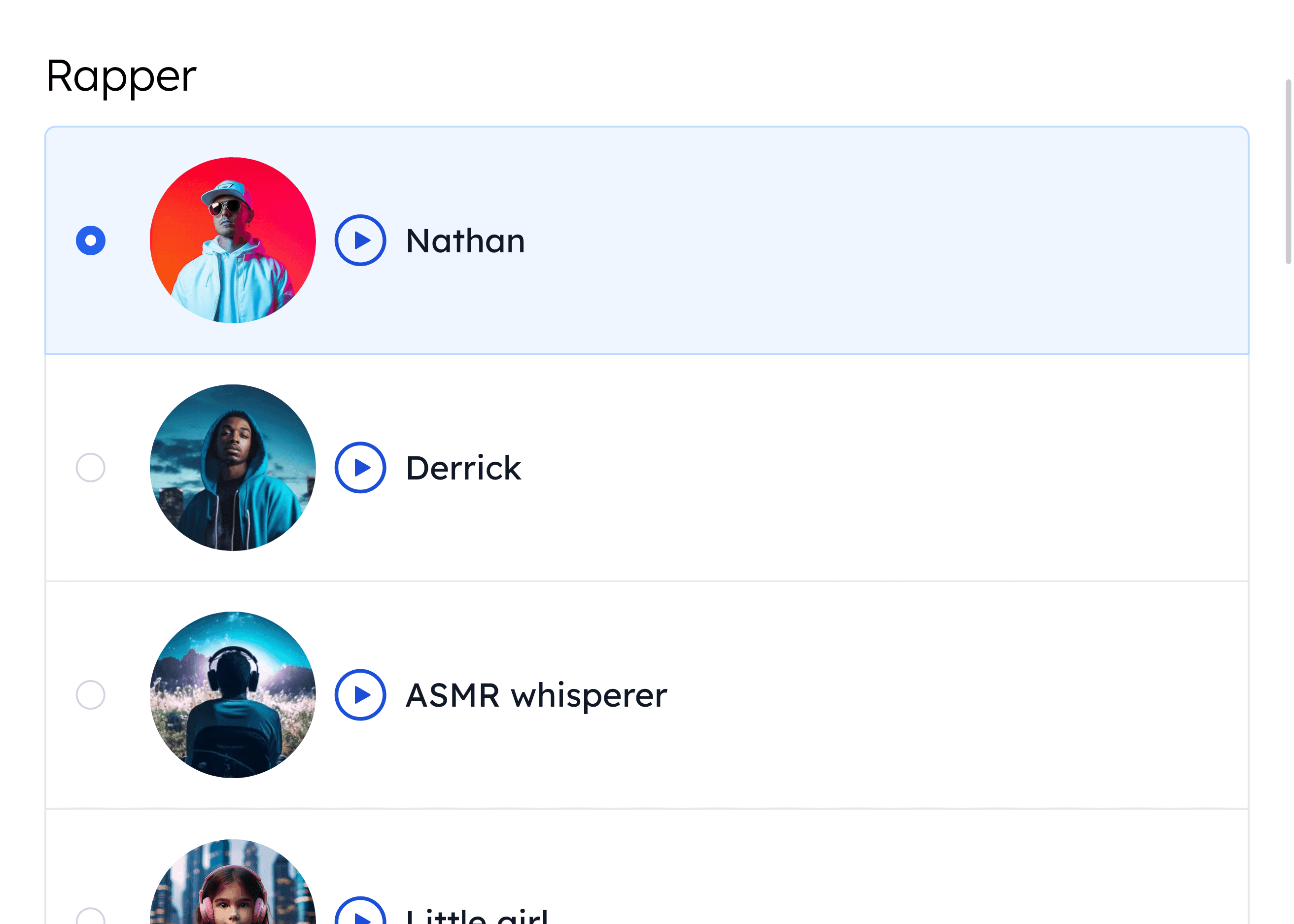 We offer multiple AI rapper voices with different styles and personalities, plus a variety of beats across different genres like hip-hop, trap, and more to create your perfect rap song.
